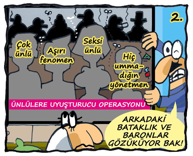 Yazar: Biliyorum tez canlısın, gençsin, dinamiksin, taşı sıksan suyunu emersin amma ve lakin lafımı bağlayamadan dekolte iç çamaşırından fışkıran taklavat misali kestin mevzuyu. Şu alakası var; o zaman nasıl “o, şu, bu geçidi” programları varsa, bugün de haber kanalları ve medyalarında sürekli gündeme küüüt! diye oturan “uyuşturucu çeken ünlüler geçidi, kara para aklayan fenomenler geçidi, arkadan iş çeviren ‘filimciler’ geçidi… Say babam say..