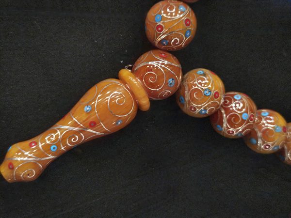Tesbih koleksiyonculuğunda her zaman yenilikçi çalışmalara imza attıklarını belirten Ünal, dükkânlarında her türden tesbihin bulunduğunu ifade etti: “Oltu taşından kehribara, fil dişinden kuka ağacına kadar her türlü tesbihi koleksiyonlarımıza ekleyebiliyoruz. Ancak bizim asıl hedefimiz, daha önce hiç yapılmamış modelleri üretmek. Bu nedenle farklı ve özel tesbihler yapmaya odaklanıyoruz. Ürettiğimiz bu tesbih de sıkma kehribar malzemeden yapıldı ve ilk defa bu boyutta bir tespihin üzerine nakkaş desenleri, firuze ve mercan taşları işlendi. Bu yüzden büyük ilgi gördü.”